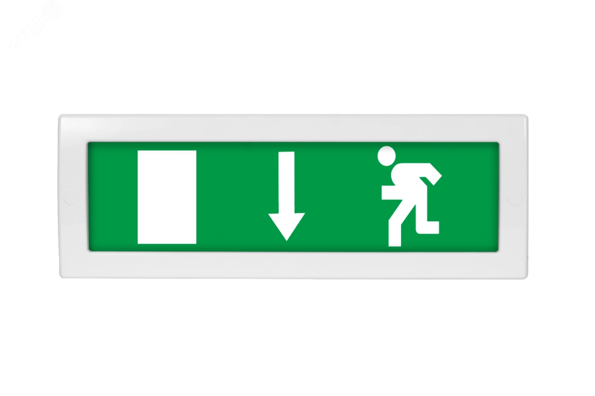 Оповещатель световой с резервным источником питания Молния-220-РИП Человек влево стрелка вниз в дверь зеленый фон