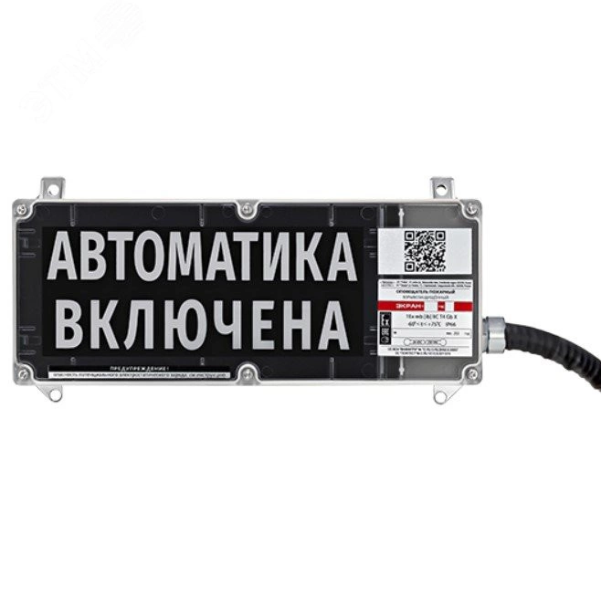 Светозвуковой оповещатель с мигающим режимом работы или с постоянным свечением табло со звуковым давлением не менее 85 дб/м Эридан `ЭКРАН-СЗ` к1 (свето-звуковой) предназначен для использования в качестве светового или светозвукового средства оповещения, информационного указателя - табло и обеспечивает подачу светового и звукового сигналов во взрывоопасной зоне. При подключении оповещателя не требуется искробезопасных шлейфов. Поставляется в базовой комплектации, длина кабеля 1,5 метра.