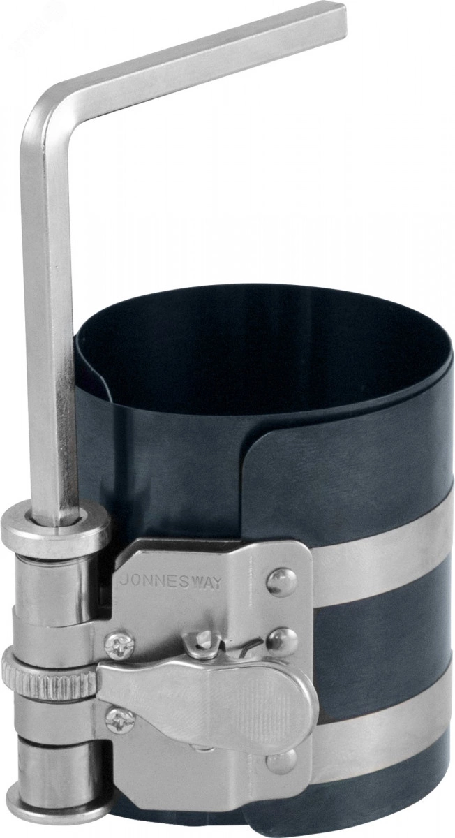 Инструмент применяется для установки поршня с кольцами в цилиндр. Оправка, высотой 76 мм, с помощью трещоточного механизма сжимает поршневые кольца до диаметра цилиндра, что позволяет легко установить поршень в блок. Инструмент изготовлен из специальной пружинной стали, комплектуется четырехгранным ключом для регулировки размера..