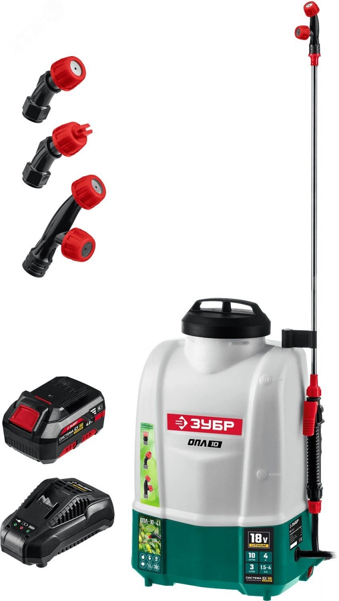 Опрыскиватель аккумуляторный, 10 л бак, 1 АКБ (4Ач), Li-Ion 18В