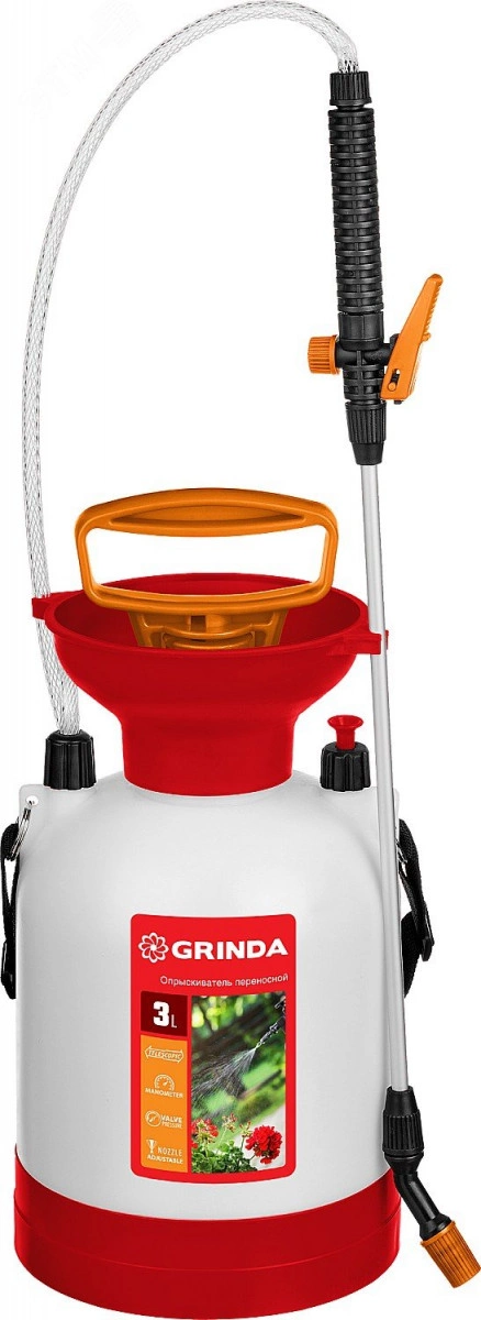 Переносной опрыскиватель GRINDA TS-3 3 л 8-425113_z02 представляет собой многофункциональный агрегат. Может использоваться для борьбы с насекомыми-вредителями, орошения растений, профилактики болезней у домашних птиц. Широкая горловина обеспечивает быстрое наполнение резервуара. Прочный бак устойчив к механическим повреждениям. Предусмотрен клапан для сброса давления.