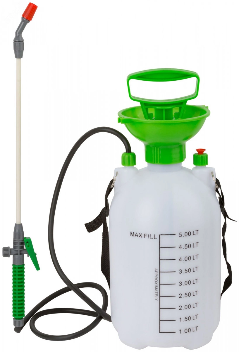 Напор воды от струи до распыление регулируется поворотным клапаном на крышке распылителя|Корпус изготовлен из прочного полипропилена|Наличие шланга повышает эффективность работы в труднодоступных местах