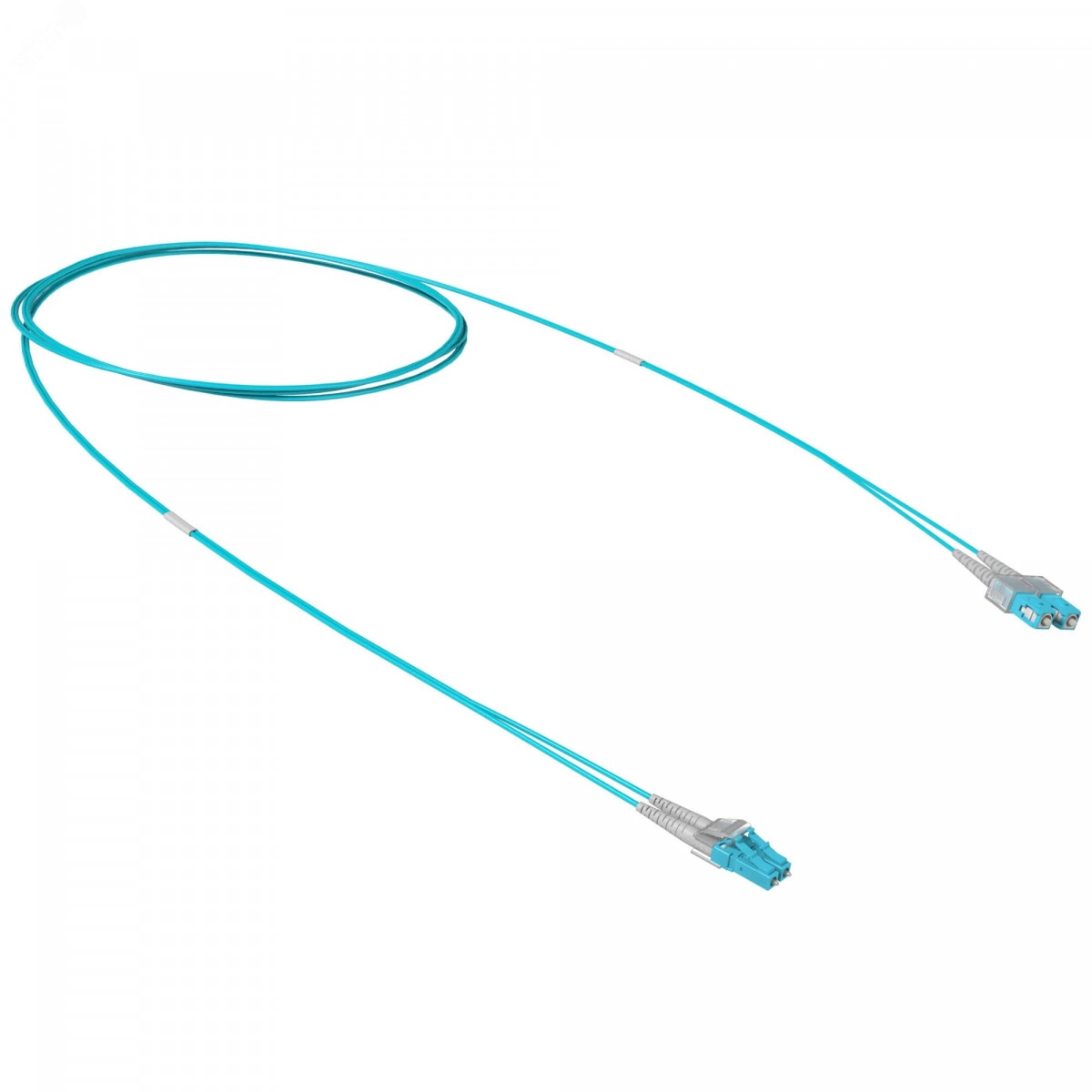 Оптический коммутационный дуплексный многомодовый OM3 переходной шнур. Оболочки коммутационных шнуров изготовлены из малодымного безгалогенного компаунда. Характеристики многомодового оптического волокна соответствуют рекомендациям ITU-T G.651.1. Тип коннекторов - SC-LC. Тип полировки - UPC. Длина - 1 м. Цвет оболочки кабеля бирюзовый.