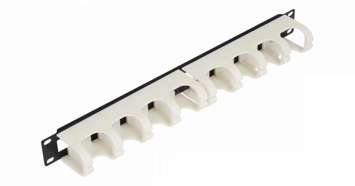 Органайзер NMC-OP110 состоит из стального основания и двух пластиковых модулей, по 5 колец на каждом. Кольца органайзера плотно сомкнуты, что позволяет использовать его даже для разводки плотных пучков тонких кабелей и проводов - например в телефонии или 110-х кроссах.