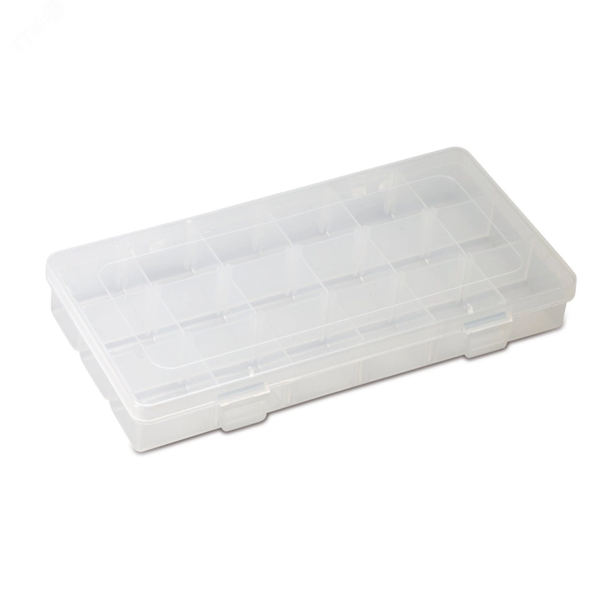 Органайзер из прозрачного пластика с 24 отсеками для хранения и переноски мелких деталей(крепежа, наконечников и т.п.). Замки на органайзере предохраняют его от случайного открытия.
