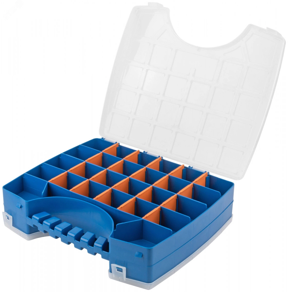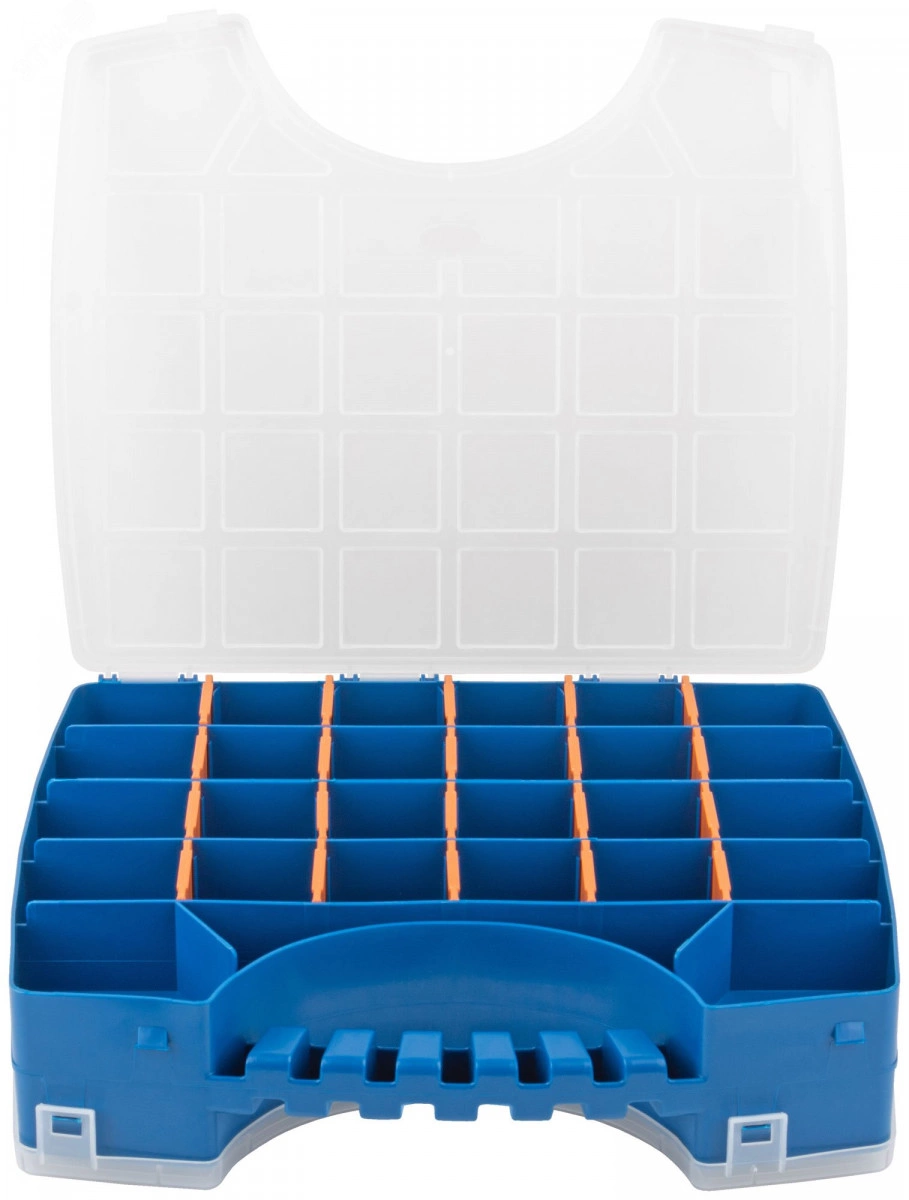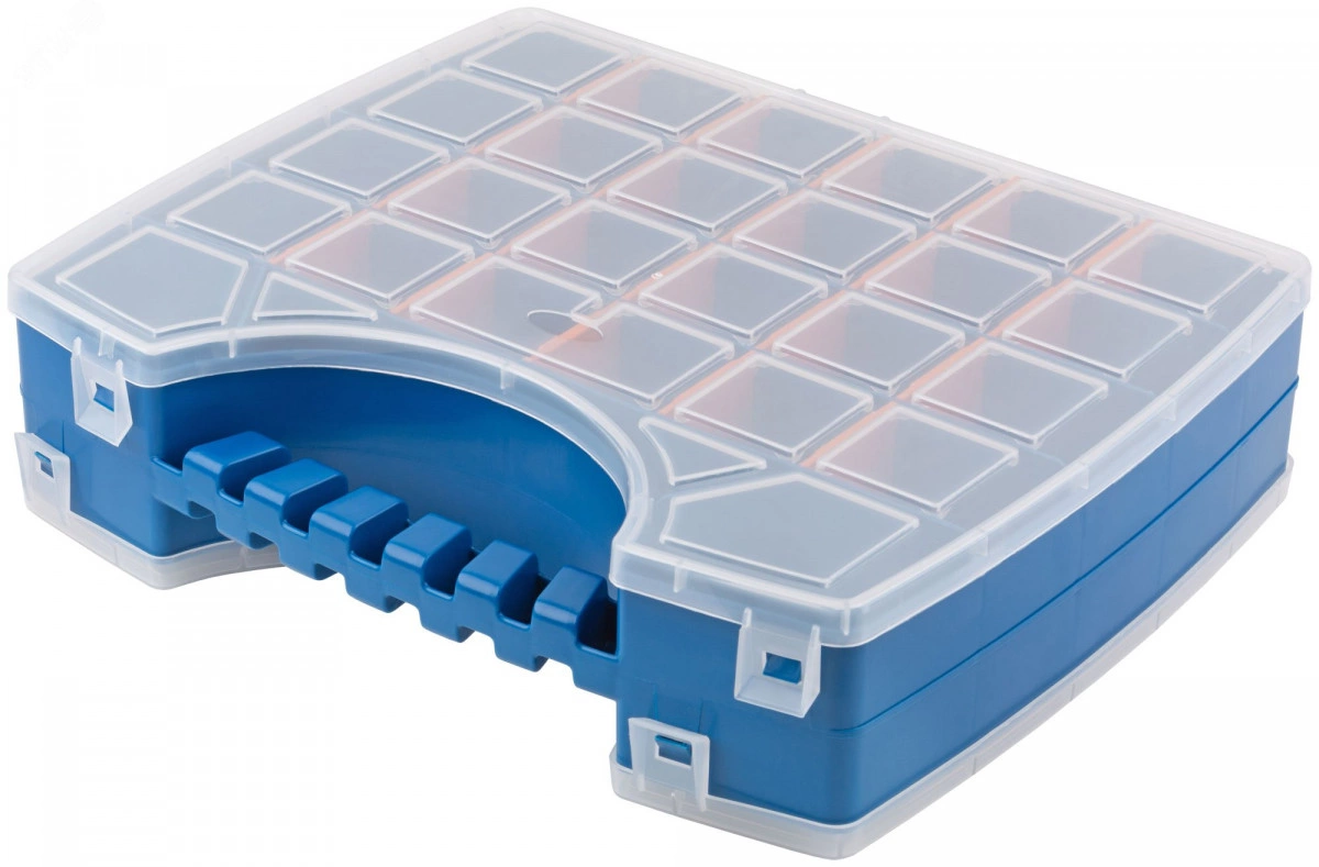 Органайзер двухсторонний MOS РОС – это практичное решение для хранения и организации мелких деталей, крепежа, метизов, рыболовных снастей, бижутерии и других предметов. Органайзер имеет двухстороннюю конструкцию с 56 отделениями различного размера, что позволяет удобно разместить и сортировать предметы, обеспечивая порядок и быстрый доступ к нужным элементам. Прозрачная крышка обеспечивает быстрый доступ к содержимому и защищает предметы от пыли и влаги, а надежные защелки предотвращают случайное открытие органайзера.