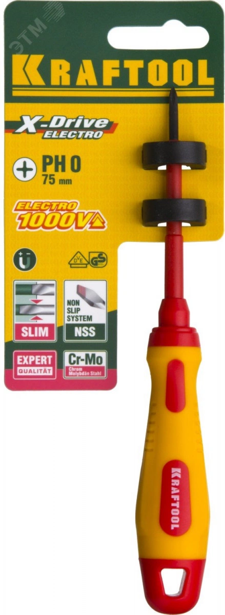 Отвертка , высоковольтная, Cr-Mo-V стержень, двухкомпонент. маслобензостойкая рукоятка, PH №0, 60мм