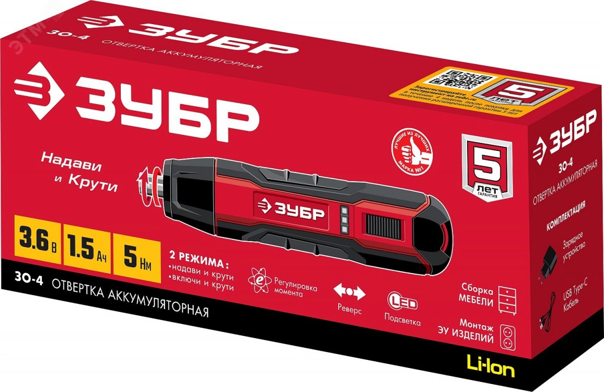 Компактная отвертка с удобным хватом и интуитивным управлением. Два способа включения естественным нажатием и выключателем. Быстрый тормоз вала без паразитного выбега. Литийионный аккумулятор без эффекта памяти и саморазряда с увеличенной для отвертки емкостью. Плавная регулировка крутящего момента благодаря электронной муфте с тонкой настройкой. Начальный момент в 0.3 Нм позволяет без повреждения заворачивать самые тонкие шурупы в даже в мягкие материалы. Зарядное устройство с кабелем USB typeC обеспечивает более короткое время зарядки и гибкие возможности подключения. Планетарный двухступенчатый редуктор имеет больший КПД и надежнее обычных редукторов, а также обеспечивает высокий крутящий момент на выходе. Яркая подсветка рабочего места способствует дополнительному удобству при работе в условиях недостаточного освещения.