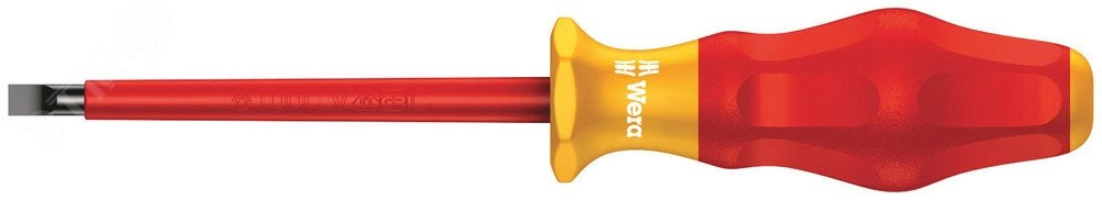 Высококачественная отвёртка Kraftform Comfort VDE. Многокомпонентная ручка Kraftform для работы в быстром и щадящем режиме. Наконечник Wera Black Point и трудоёмкий процесс закалки обеспечивают долгий срок службы наконечника, повышенную защиту от коррозии и точность работы. Поштучная проверка в водяной бане под напряжением 10000 В для безопасной работы на оборудовании с максимально допустимым напряжением 1000 В. Шестигранный край ручки предотвращает надоедливое перекатывание отвёртки на рабочем месте. С маркировкой ручки для облегчённого отбора и сортировки инструментов.