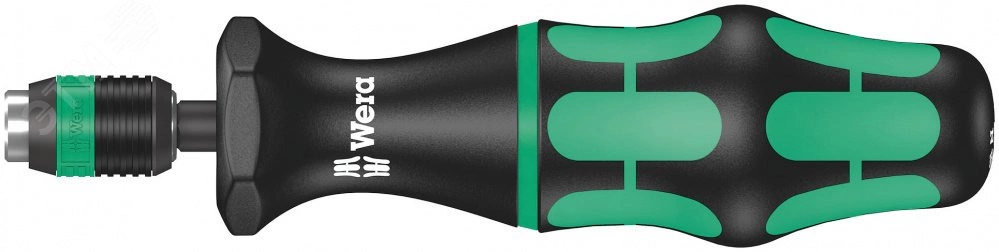 Динамометрическая отвёртка Wera. С уставкой момента затяжки для всех видов работ, когда требуется сохранять постоянный момент затяжки в серийных операциях. Значение момента затяжки можно изменять в пределах диапазона значений. Быстрозажимной патрон Rapidaptor для моментальной смены битов. Без ограничения момента силы при отвинчивании трудноподдающихся винтов. Многокомпонентная ручка Kraftform с твёрдыми и мягкими зонами для высокой скорости работы и для щадящего контакта с ладонью. Подходит для битов с шестигранным хвостовиком 1/4'' по стандарту DIN ISO 1173-C 6,3 и E 6,3 (ISO 1173).