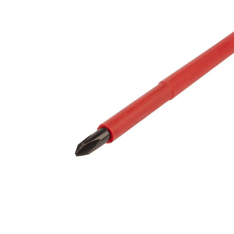 Стержень отвертки из высококачественной хромованадиевой стали с оксидированным намагниченным наконечником покрыт специальным изоляционным материалом.