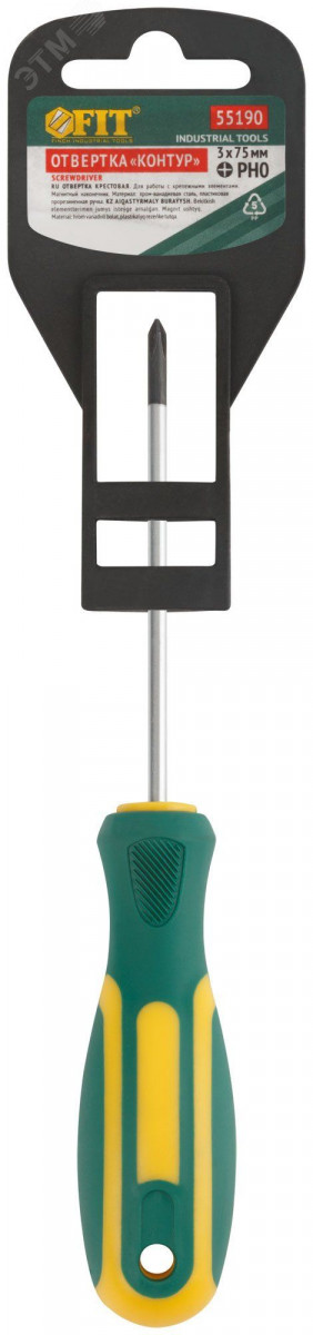 Отвертка ‘’Контур’’ FIT IT предназначена для завинчивания и отвинчивания крепёжных изделий с резьбой. Стержень отвертки изготовлен из хромованадиевой стали и выдерживает высокие механические нагрузки. Точная геометрия наконечника позволяет эффективно работать с соответствующим типом крепежа. Магнитный наконечник способствует удержанию крепежных элементов и их извлечению из труднодоступных мест. Пластиковая прорезиненная рукоятка не скользит в руке во время работы. Рельефная область под упор большого пальца способствует эффективной работе. В рукоятке предусмотрено отверстие для удобного хранения.