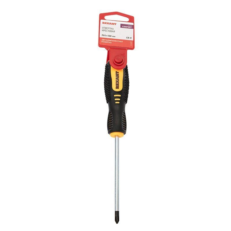 Отвёртка PH1 X 100 мм REXANT предназначена для монтажа/ демонтажа крепежных соединений.