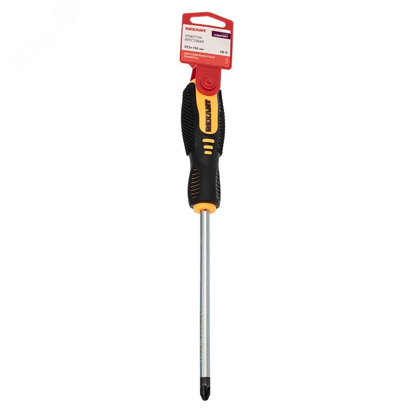 Отвертка крестовая REXANT предназначена для проведения монтажных и демонтажных работ резьбовых соединений шурупов, саморезов и т. д. Стержень инструмента выполнен из качественной хромованадиевой стали с оксидированным намагниченным наконечником. Отвертка обладает эргономичной двухкомпонентной рукояткой, которая предотвращает скольжение в ладони и обеспечивает более комфортную работу. В основании инструмента предусмотрено отверстие для его подвеса.