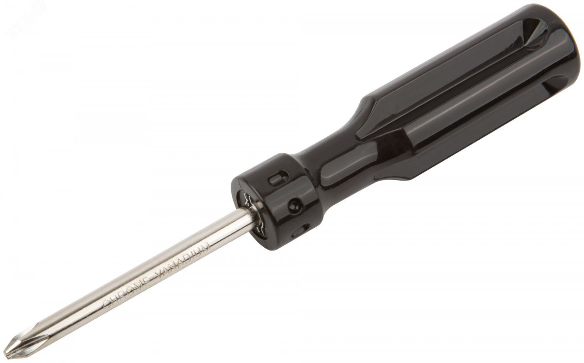 жало из хром-ванадиевой стали обладает высокой прочностью и износостойкостью|двусторонняя форма жала повышает спектр совместимого крепежа|компактный размер отвертки дает возможность работы в труднодоступных местах|эргономичная ручка обеспечивает наде
