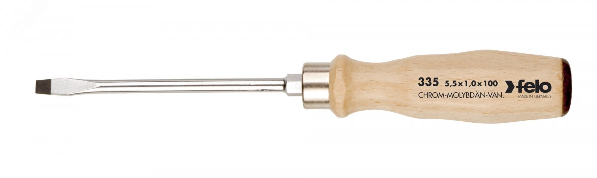 Отвертка ударная Felo серии 330 с деревянной рукояткой из твердого бука. Рукоятка имеет улучшенную эргономику для удобного хвата, максимальную передачу крутящего момента на крепеж и достижения наилучшего результата в работе! Продуманный дизайн рукоятки не позволяет инструменту скатываться с поверхности. Кожаный колпачок на рукоятке защитит ее от повреждений, сколов и растрескивания. Стержень изготовлен из высококачественной инструментальной стали (CrMoV), закаленной дополнительно в масле. На стержне имеется приваренная шестигранная гайка под ключ для придания дополнительного усилия на крепеж. Длина стержня - 100 мм. Общая длина - 200 мм.