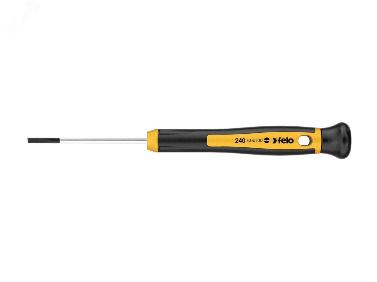 Отвертка шлицевая плоская для точных работ SL 4,0х0,8х100 идеально подходит для ремонта оргтехники, ноутбуков, телефонов и очков. Стержень отвертки, проходящий по всей длине рукоятки, изготовлен из хром-молибден-ванадиевой стали, закаленной в масле, что делает инструмент более долговечным по сравнению с обычными отвертками. Рукоятка выполнена по технологии двухкомпонентной ручки с мягким внешним покрытием для дополнительного комфорта. Свободно вращающийся колпачок минимизирует трение. В рукоятке имеется отверстие для удобного хранения инструмента. Страна производства - Германия. Гарантия на инструмент 15 лет.
