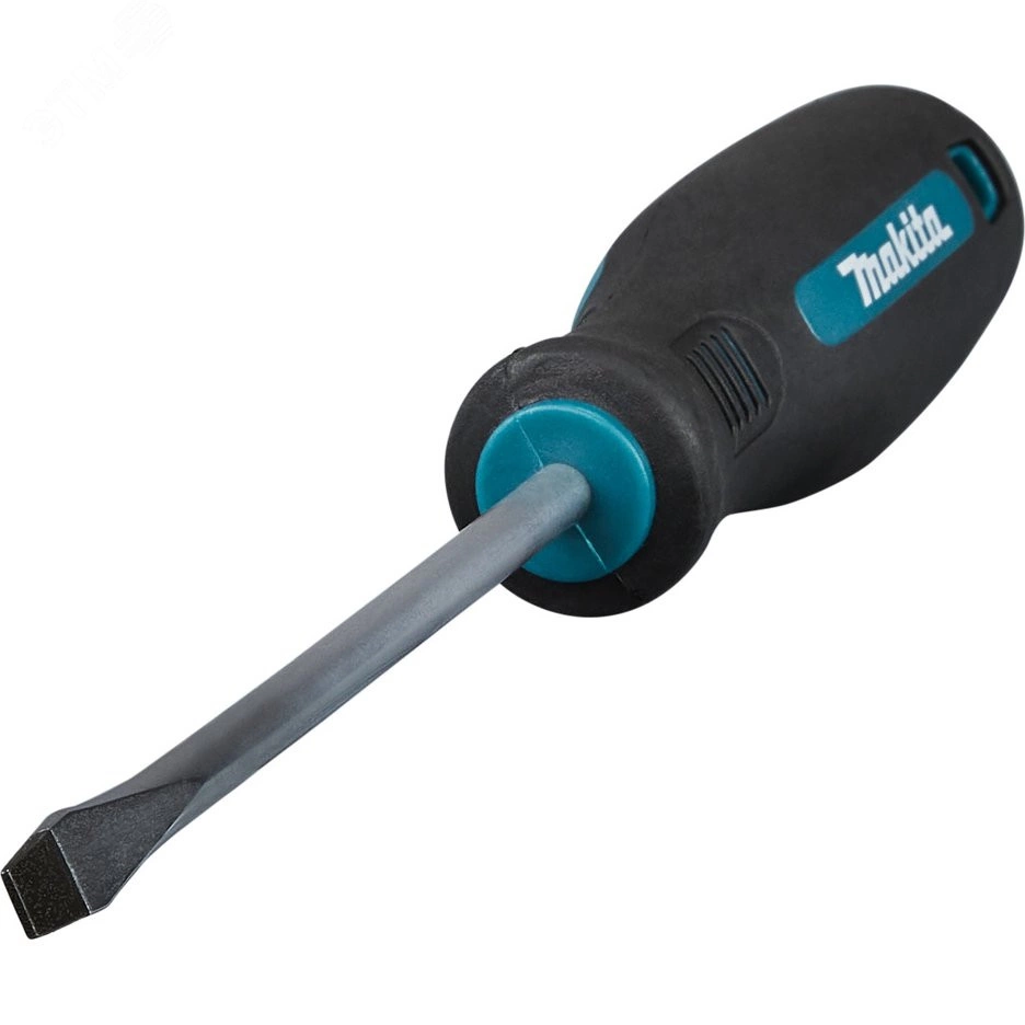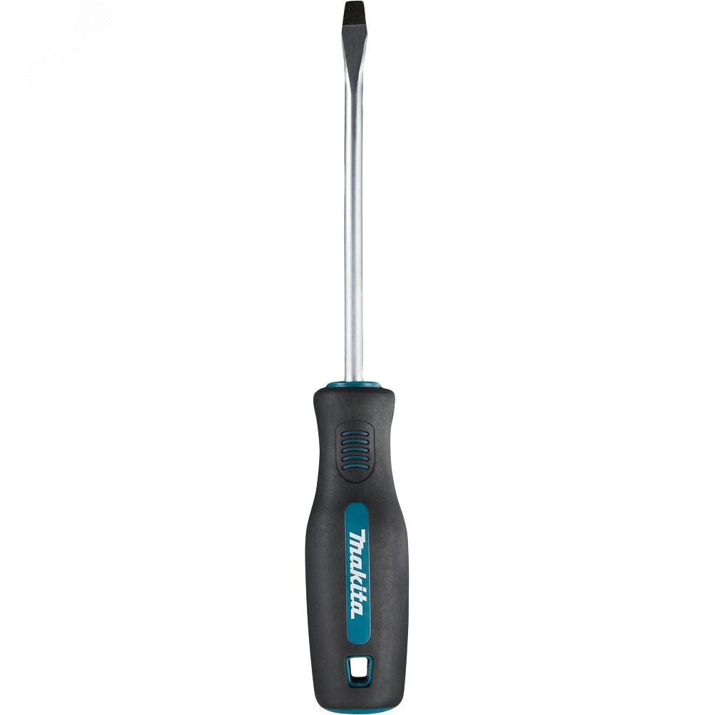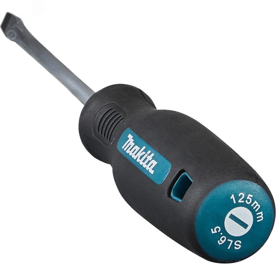 Отвертка Makita SL6.5, длиной 125 мм. Она имеет магнитный наконечник и нескользящую ручку. Имеет плоский шлиц и цилиндрический хвостовик. Магнитный наконечник обеспечивает лучший контроль, а нескользящая маслостойкая ручка делает использование отвертки более комфортным.