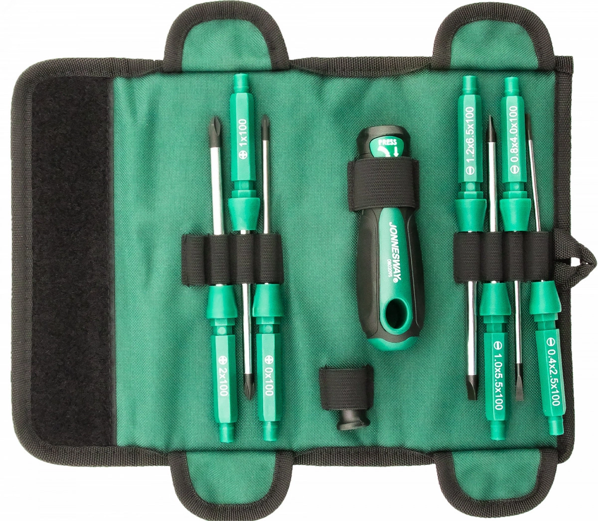 Отвертка со сменными стрежнями в наборе, 9 предметов