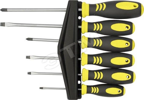 Хард'. Набор 6 шт. на пластиковом держателе. Отвертки - PH 1x100, PH 2x150, SL 3x75, SL 4x100, SL 5x100, SL 5x150. Материал - жало из хром-ванадиевой стали, магнитный наконечник, прорезиненная ручка. Упаковка - блистер. Отвертки - PH 1x100, PH 2x150, SL 3x75, SL 4x100, SL 5x100, SL 5x150. Материал - жало из хром-ванадиевой стали, магнитный наконечник, прорезиненная ручка. Упаковка - блистер.