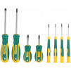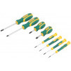 Набор отверток предназначен для электромонтажных работ, монтажа/демонтажа крепежных соединений - шурупов, саморезов и т. д. Стержни отвертки из высококачественной хромованадиевой стали с оксидированными намагниченными наконечниками. Корпус эргономичной рукоятки выполнен из пластика, не скользит в ладони, что обеспечивает дополнительный комфорт при работе.