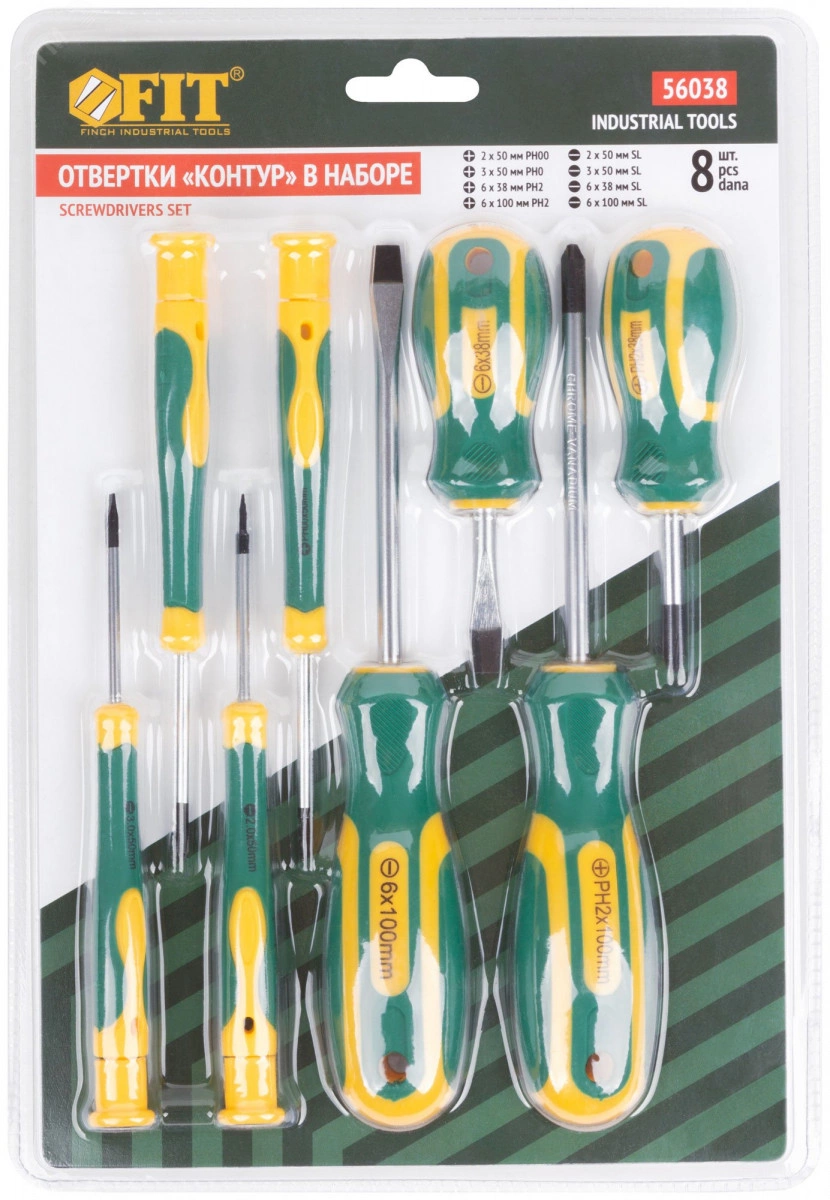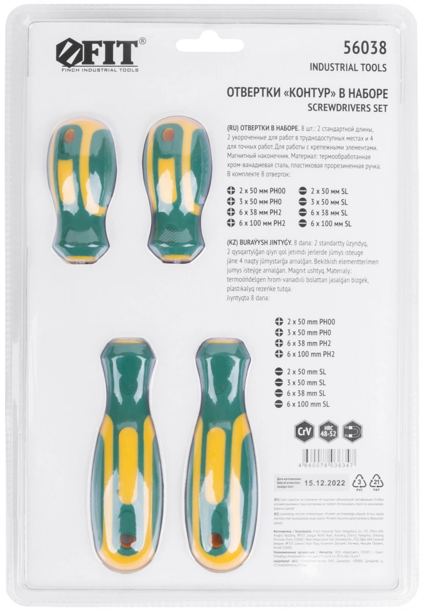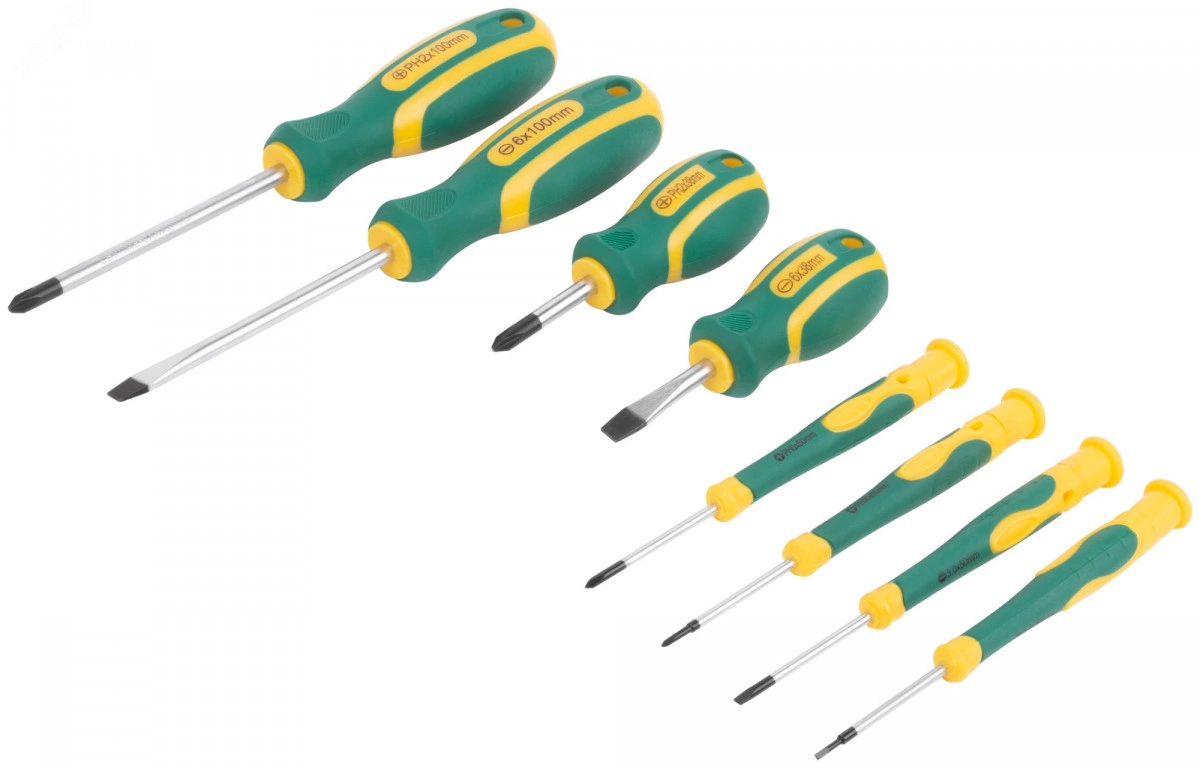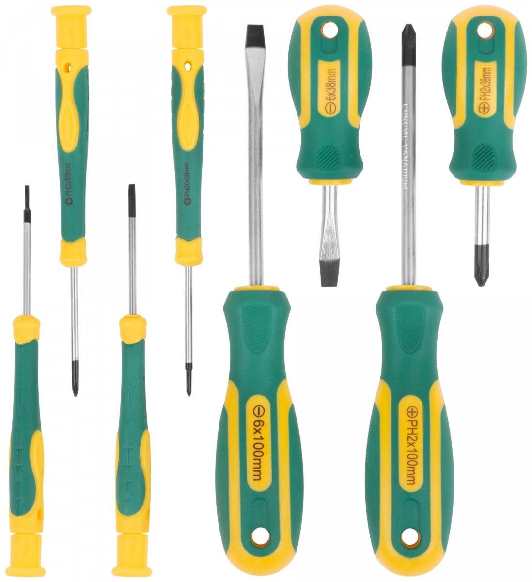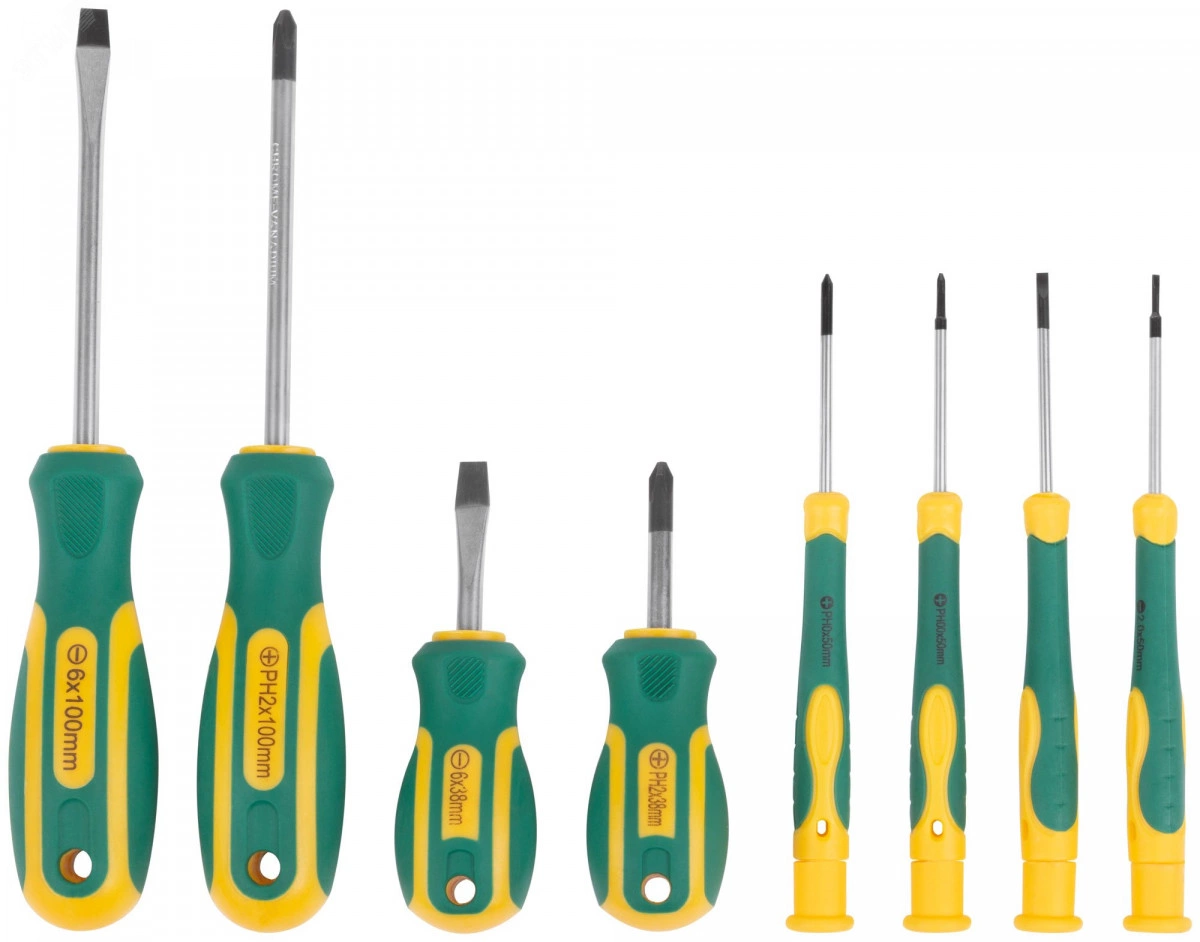 Отвертки ''Контур'', CrV сталь, прорезиненные ручки, 4 шт. + отвертки для точных работ 4 шт., блистер, набор 8 шт.