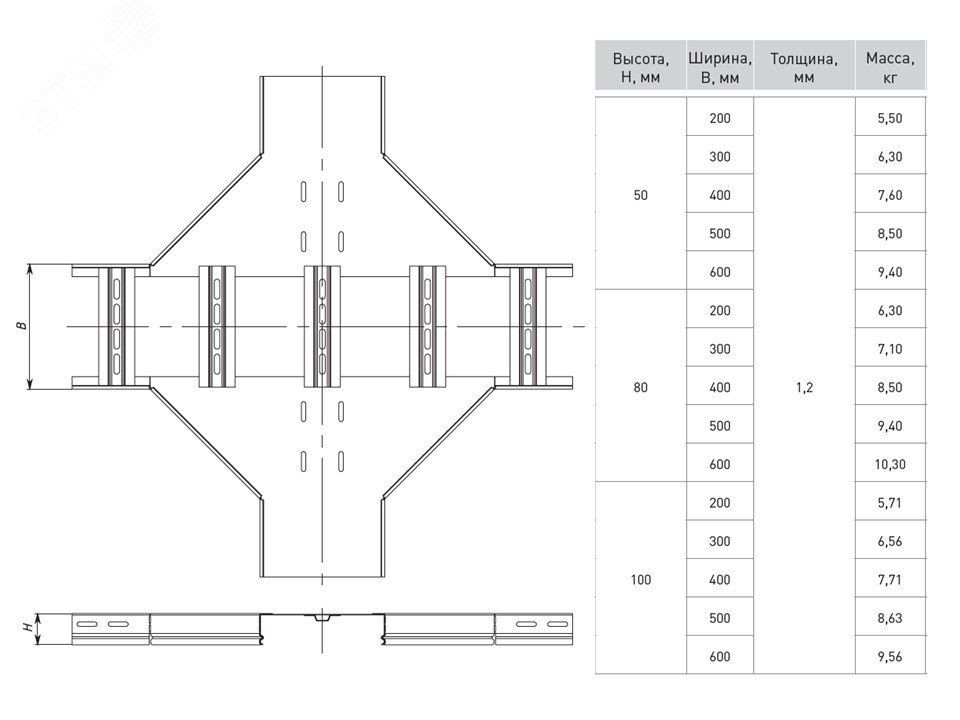 Ответвитель крестообразный лестничный 100х400мм HDZ