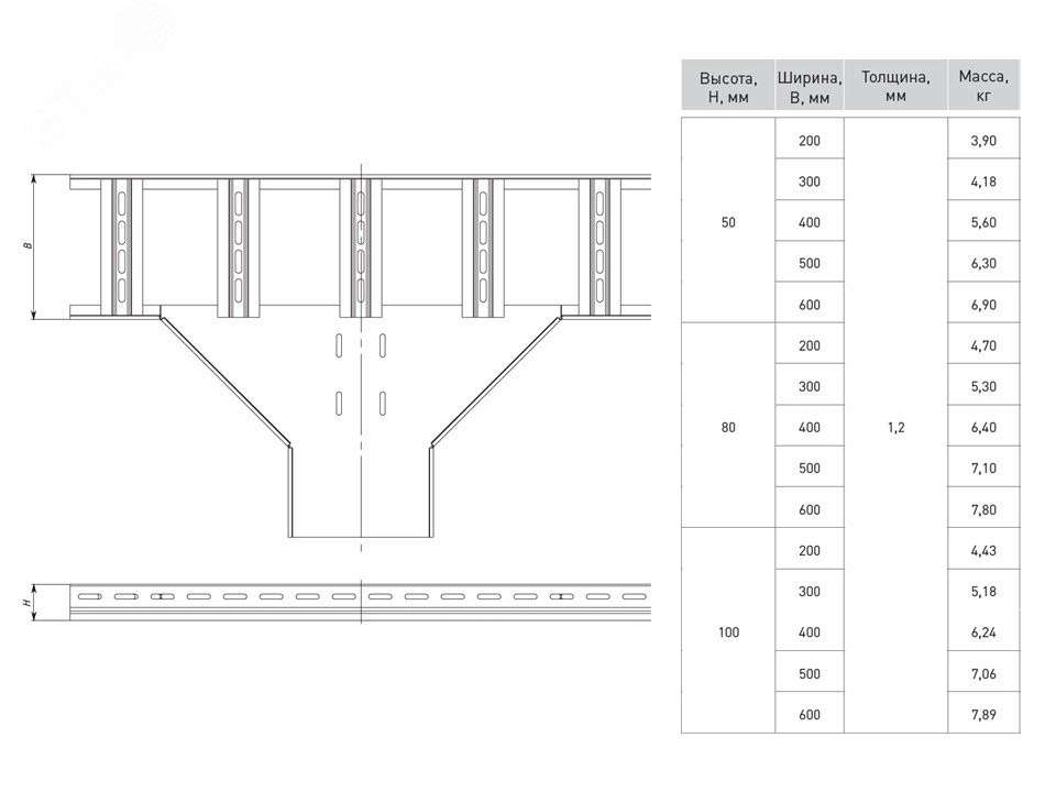 Ответвитель T-образ. лестничный 100х600мм HDZ