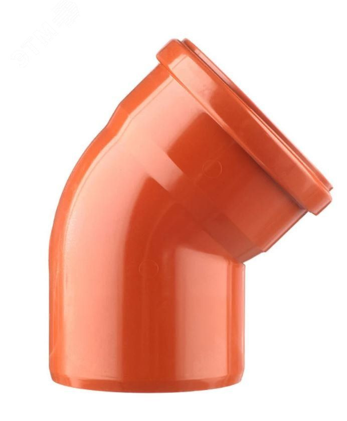 Материал - непластифицированный поливинилхлорид (PVC)|Цвет - оранжево-коричневый RAL 8023|Уплотнения - однолепестковое SBR (NBR)|Химическая стойкость - применяется для агрессивных сред в диапазоне от pH 2 до pH 12|Выдерживаемое давление системы - 0,5