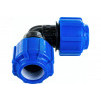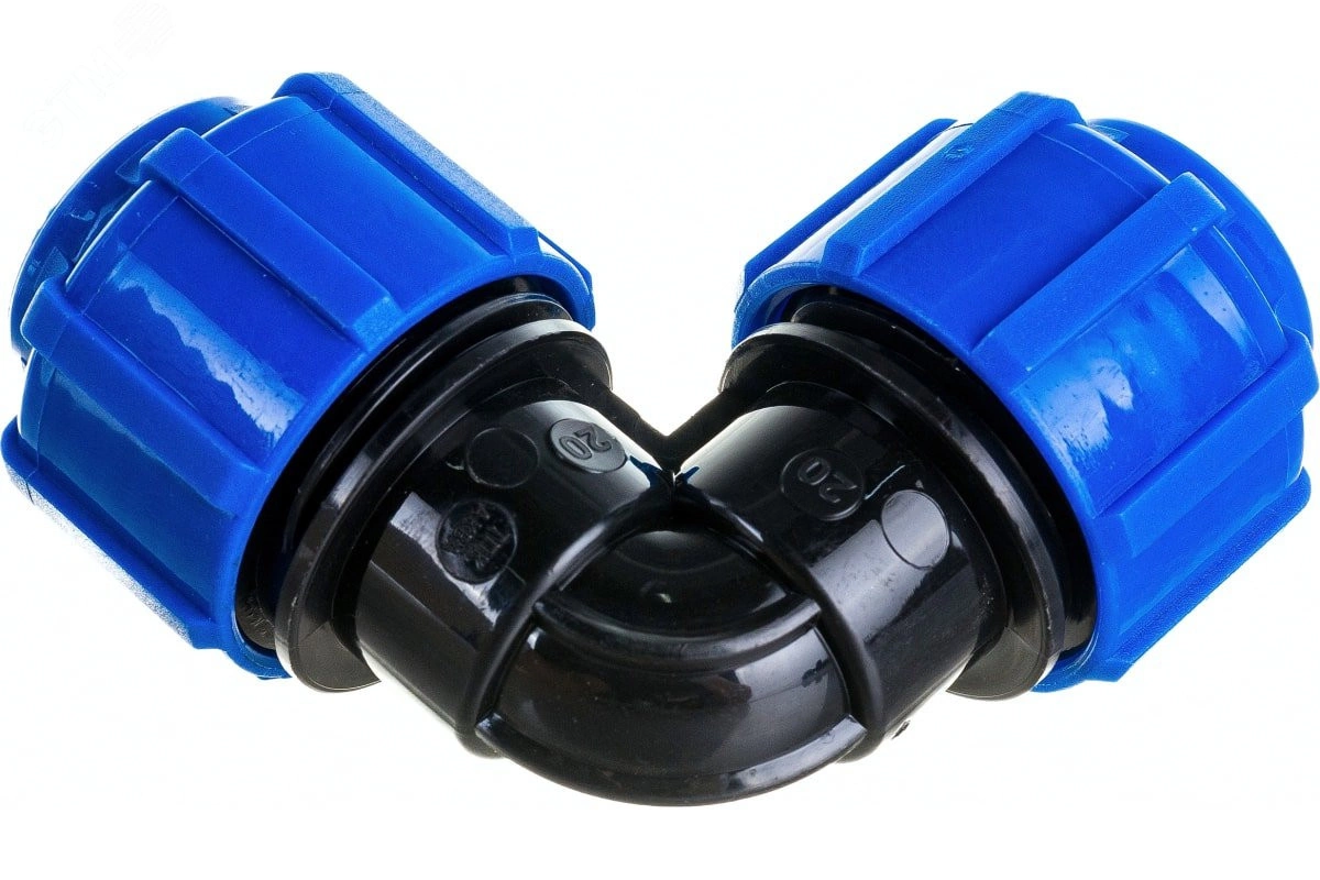 Отвод компрессионный. Предназначен для обеспечения надежного соединения двух полиэтиленовых труб равного диаметра между собой, под прямым углом. Может использоваться при строительстве систем питьевого или технического водопровода, систем напорной (с рабочим давлением до 16 атмосфер) или безнапорной канализации, для устройства кабельных каналов из ПНД труб в линейке диаметров 20 мм, 25 мм, 32 мм,  40 мм,  50 мм,  63 мм, 75 мм, 90 мм и 110 мм. Материал - полиэтилен.