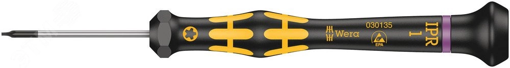 Высококачественная отвёртка Wera Micro для тонкой работы. За счёт опоры ладони на подвижную головку и расположенной под ней зоны быстрого вращения можно работать отвёрткой в скоростном режиме. Не надо тратить время на перехватывание инструмента. Зона приложения усилий с мягкими участками служит для передачи больших моментов силы при затяжке и отпуске винтов. Прецизионная зона для выбора правильного угла завинчивания при юстировочных работах. Наконечник Wera Black Point обеспечивает точность работы и оптимальную защиту от коррозии. Значение электрического поверхностного сопротивления материала Wera ESD составляет ? 10^9 Ом. Это обеспечивает надежную защиту деталей от электростатической энергии и связанных с ней повреждений. System wyszukiwania narz?dzi ''Take it easy'' z oznaczeniem kolorystycznym rozmiar?w u?atwia i przyspiesza odnajdywanie w?a?ciwego narz?dzia.
