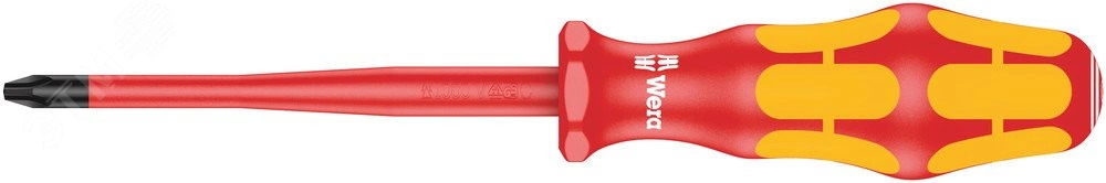 Электроизолированная отвёртка по нормам VDE с зауженными стержнем и ручкой, которой можно в тесном пространстве достать расположенные в глубине винты. С многокомпонентной ручкой Kraftform Plus для работы в быстром и щадящем режиме - твердые зоны ручки для высокой скорости работы, в то время как мягкие зоны ручки обеспечивают передачу больших моментов силы. Поштучная проверка в водяной бане под напряжением 10000 В для безопасной работы на оборудовании с максимально допустимым напряжением 1000 В. Идентификаторы инструментов ''Take it easy'' с цветовой кодировкой профиля и гравировкой размера - для простого и быстрого отбора требуемого инструмента. Шестигранный край ручки предотвращает надоедливое перекатывание отвёртки на рабочем месте.