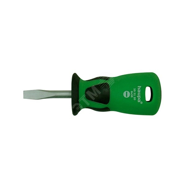 Компактная отвертка с коротким стержнем, оснащена двухкомпонентной рукояткой из полипропилена/термоэластопласта, длина стержня 40 мм.