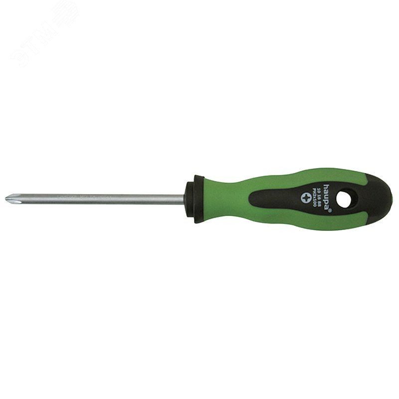 Крестообразная отвертка с двухкомпонентной рукояткой из полипропилена/термоэластопласта, стержень из молибден - ванадиевой стали защищен покрытием из ПВХ, длина стержня 80 мм.