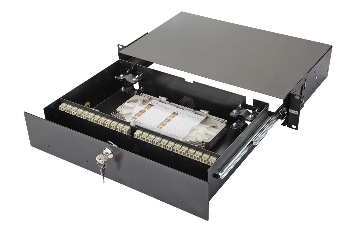 Панель коммутационная 19 дюймов 2U выдвижная корпус 48 адаптеров 9/125 OS2