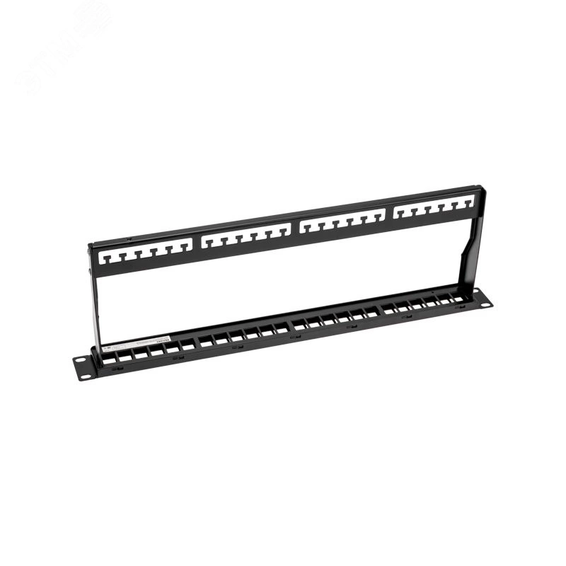 Патч-панель (коммутационная панель) UTP категории 5e используется при построении структурированных кабельных сетей. Относится к пассивному сетевому оборудованию. Служит для быстрой и удобной коммутации кабелей между активным сетевым оборудованием и рабочими местами (станционной и абонентской частями). Организовывает пространство внутри информационных шкафов и упорядочивает кабельную разводку. Содержит 24 порта- позволяет совмещать в своем корпусе разъемы разных видов (Keystone, RJ45 и т. д) и категорий (5е,6 и т. д.). Патч-панель монтируется в стойку 19 дюймов. Выполнена из высококачественной стали 1,6 мм.