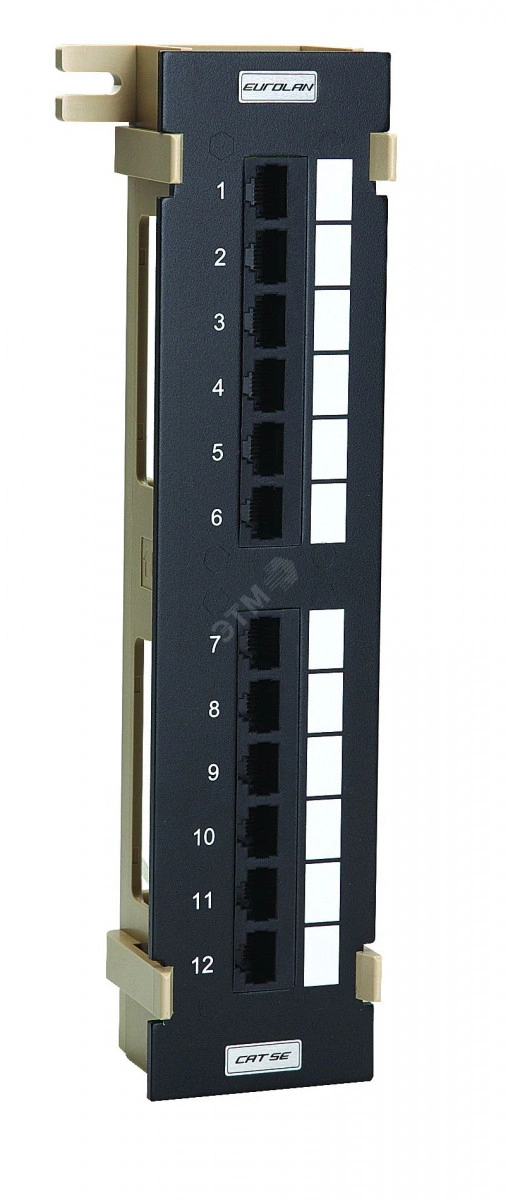 Коммутационный блок моноблочных панелей категории 5 выполнен на основе печатных плат с установленными на них розетками 8-позиционных модульных разъемов и задних оконцевателей типа 110. Для настенного монтажа.
