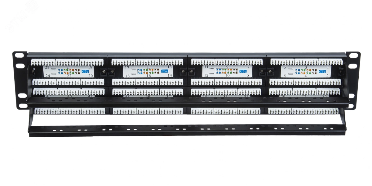 Панели коммутационные представляет собой устройство для фиксированного монтажа кабелей горизонтальной системы СКС и подключения их посредством коммутационных шнуров к активному оборудованию. Также возможно применение коммутационных панелей в составе кроссового соединения (кросс-коннект). Использование панели значительно облегчает администрирование СКС объекта. Панели различаются как конструкционно - экранированные и неэкранированные, так и по количеству установленных портов для коммутации. Наличие кабельного организатора с задней стороны панели позволяет закрепить подводимые кабели. Также обязательно следует обращать внимание на категорию используемой панели – она должна совпадать с категорией используемого кабеля и коммутационных шнуров.