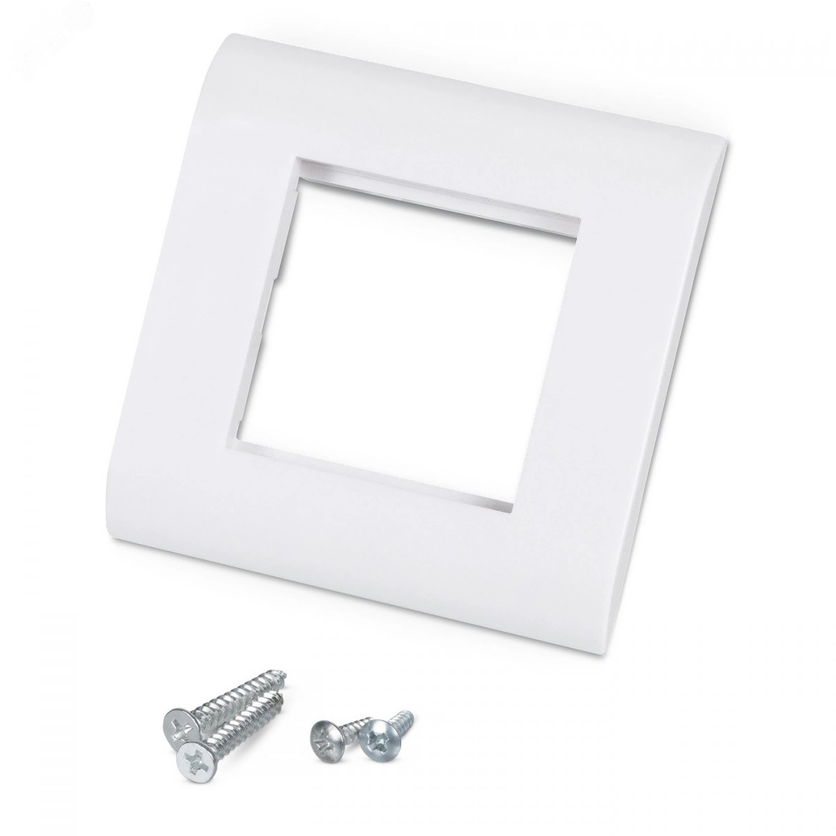 Лицевая панель предназначена для установки розеточных модулей размерностью 45х45 мм в настенные коробки или скрытно в стену. Состоит из металлического суппорта и пластиковой лицевой рамки. Суппорт фиксируется с помощью винтов, лицевая рамка – при помощи защелок.
