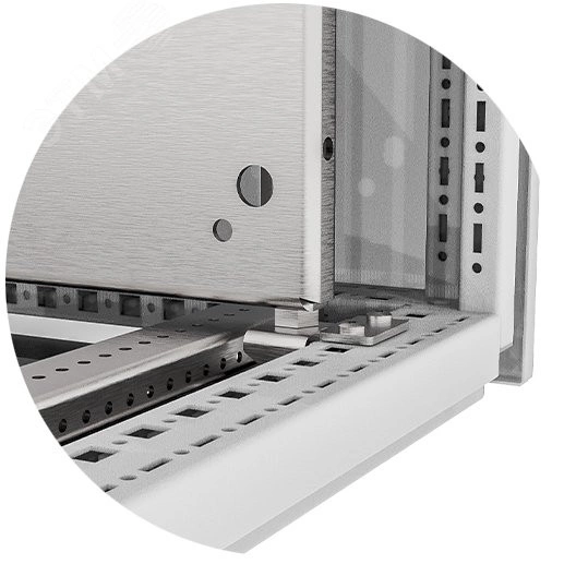 Панель монтажная предназначена для установки в рамы и корпуса напольных линейных шкафов RS52. Крепится к горизонтальным балкам основания и крыши при помощи стальных кронштейнов.