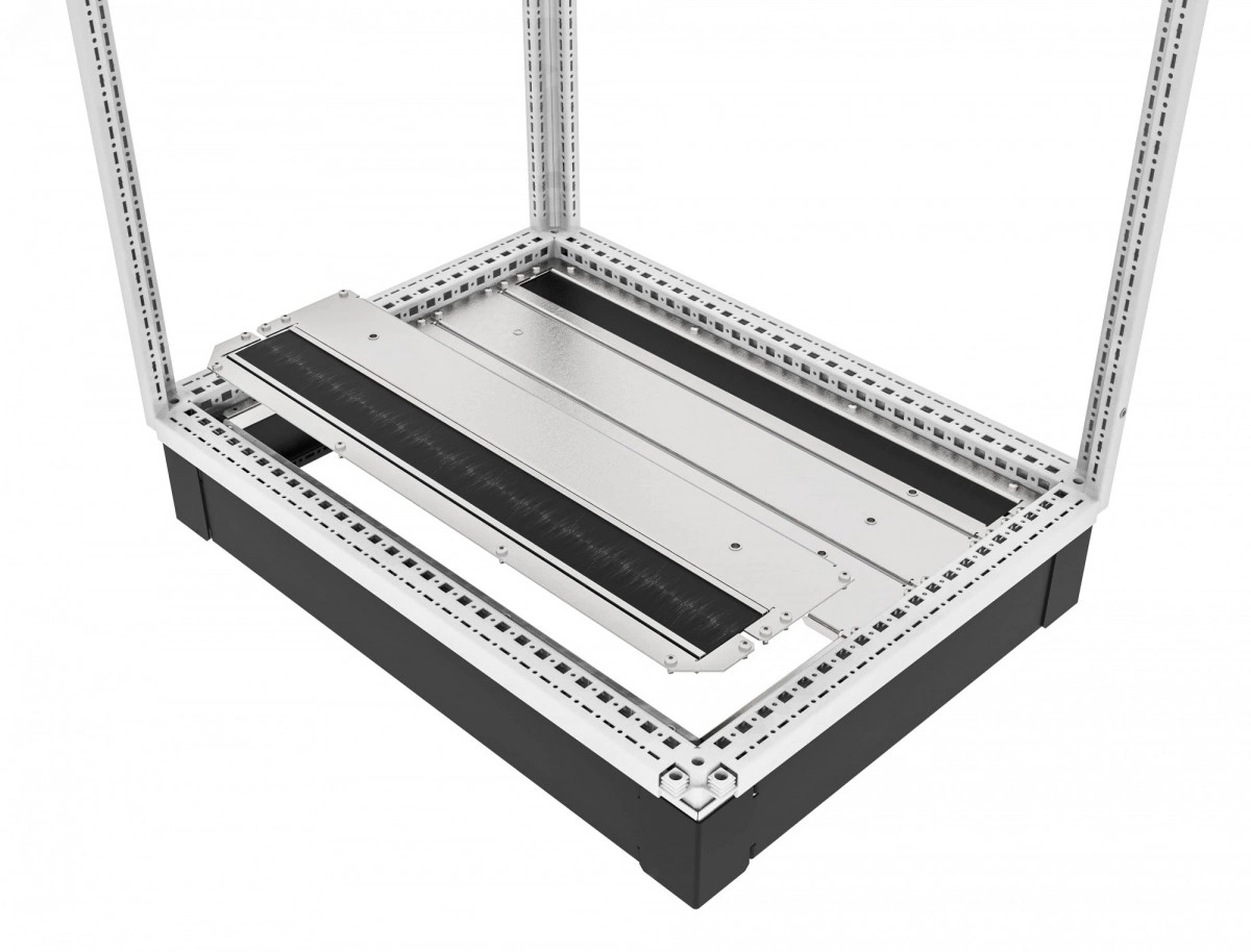 Панель с щеточным вводом концевая двухсекционная RS52 предназначена для монтажа групповых линий. Модуль с щеточным вводом 200 мм заменяет комбинацию из двух стандартных панелей 100 мм RS52. Предусмотрена боковая и фронтальная установка.
