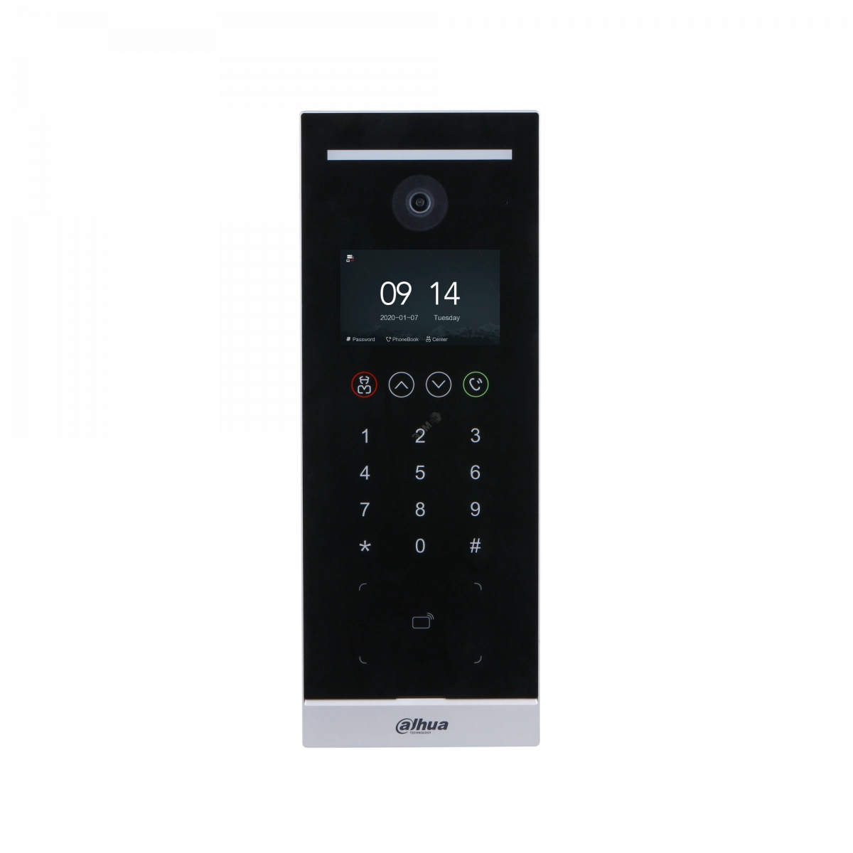 Вызывная панель с разрешением 2мп и CMOS сенсором, 4,3-дюймовый IPS дисплей, разрешение экрана 800 480, WDR 120дБ, алюминиевая анодная поверхность, металлическая кнопка, IC-карты, IP65, рабочая температура от -30 до +60градусов.