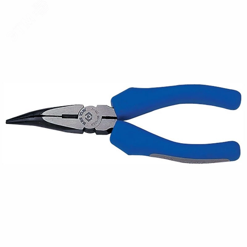 Плоскогубцы удлиненные загнутые. Область применения - станции технического обслуживания (СТО), автосервисы, автомастерские. Особенности - Тип - полукруглые загнутые. Широкие губы. Двухкомпонентные эргономичные ручки. Режущие кромки подвергнуты индукционной закалке. Соответствует стандарту DIN5745.