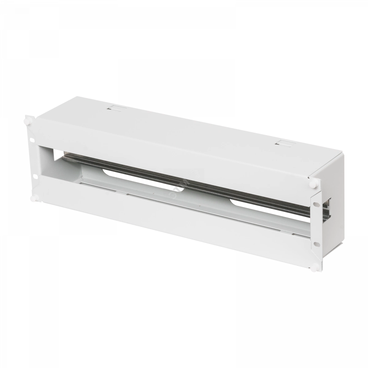 Панель 19'''' с DIN-рейкой, 3U предназначена для организации ввода внешнего электропитания в шкафы и стойки. Позволяет разместить до 25 автоматов шириной 17,5 мм электропитания по стандарту DIN 43880. Панель 19'''' с DIN-рейкой, 3U состоит из корпуса с установленной в нем DIN-рейкой длиной 443 мм и двух легкосъемных крышек, установленных сверху и снизу. Корпус на торцах имеет крепежные отверстия для монтажа панели на 19'' направляющих. Сзади корпуса выполнены 4 паза (150х32 мм) для подвода-вывода кабелей. На передней части панели сверху и снизу установлены легкосъемные крышки на защелках. Конструкция позволяет беспрепятственно осуществлять выводы кабелей.
