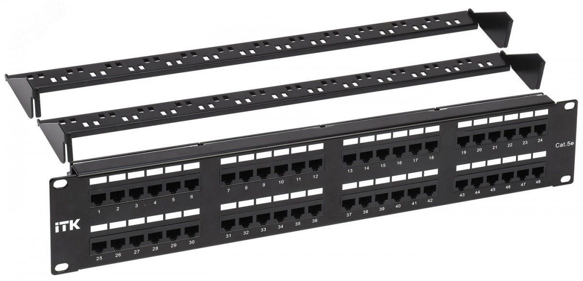 Коммутационные панели или патч-панели являются важнейшей частью любой СКС и IT-инфраструктуры здания и сооружения с большим количеством информационных розеток и терминальных портов конечных пользователей.В зависимости от способа крепления, масштабности кабельной системы, типа сети ITK изготавливает патч-панели для настенного монтажа или монтажа в 19-дюймовый конструктив, по количеству портов - 12-, 24-, 25-, 48-, 50-, категорий - 3 (телефонные), 5E, 6, 6A, в экранированном исполнении и без защитного экрана.Патч-панели для монтажа в 19' шкаф или стойку соответствуют стандарту 19' (482,6 мм), имеют отверстия с левой и правой стороны для крепления на профиль, производятся высотой 0,5, 1 или 2 юнита.На передней стороне все патч-панели ITK имеют специальную площадку для дополнительной маркировки и цифровую нумерацию портов.Патч-панели соответствуют международным стандартам UL 1863, ISO/IEC 11801 -2002, TIA/EIA-568-B.