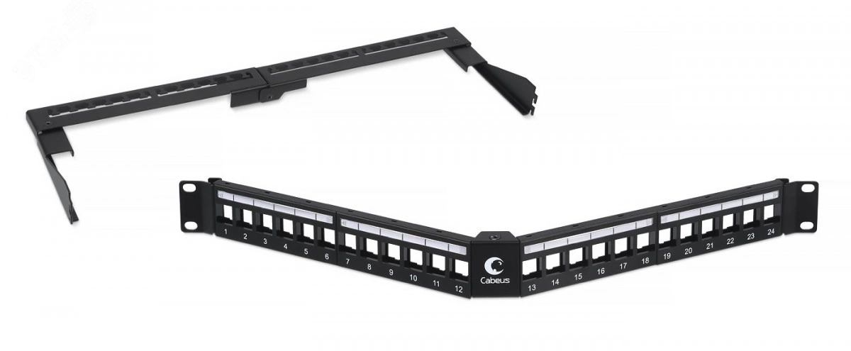 Коммутационные панели (патч-панели) предназначены для терминирования на них кабелей различных подсистем СКС и для коммутации отдельных элементов сети друг с другом при помощи коммутационных шнуров. Модульная угловая патч-панель Cabeus выполнена в 19' формате и предназначена для установки в телекоммуникационные шкафы и стойки. Используется для установки неэкранированных модулей типа Keystone. Модульные патч-панели обеспечивают максимальную гибкость при эксплуатации сетей, позволяя легко и быстро переконфигурировать систему соединений под индивидуальные потребности. С лицевой стороны все порты пронумерованы. В комплект патч-панели входит съемный задний организатор для фиксации кабелей.