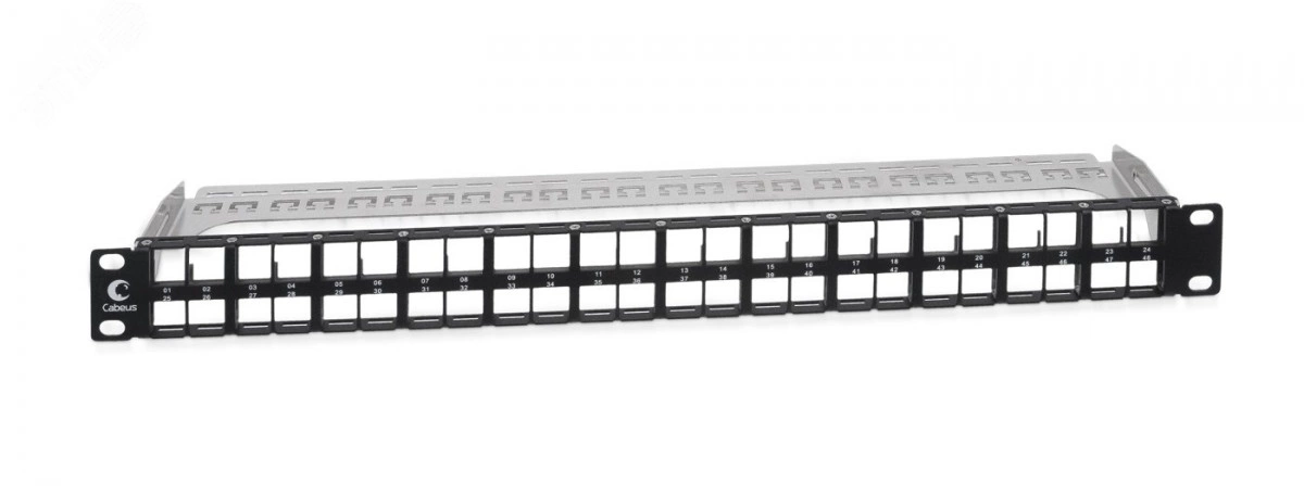 Коммутационные панели (патч-панели) предназначены для терминирования на них кабелей различных подсистем СКС и для коммутации отдельных элементов сети друг с другом при помощи коммутационных шнуров. Модульная патч-панель Cabeus выполнена в 19' формате высотой 1U и предназначена для установки в телекоммуникационные шкафы и стойки. Используется для установки 48 экранированных модулей типа Keystone. Модульные патч-панели обеспечивают максимальную гибкость при эксплуатации сетей, позволяя легко и быстро переконфигурировать систему соединений под индивидуальные потребности.