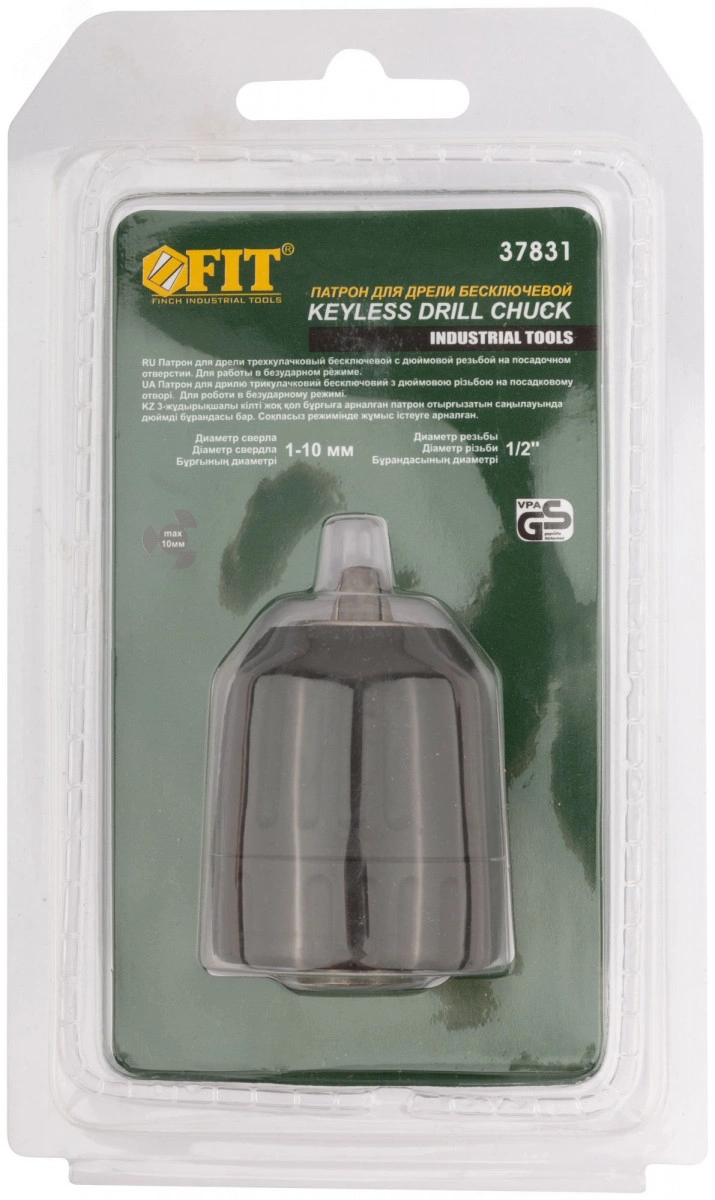 Для ручных и электрических дрелей, 3-х кулачковый. Упаковка - картонная коробка.