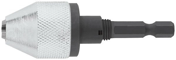 Мини. Трехкулачковый. Для ручных и электрических дрелей. Для безударного сверления. Шестигранный U-образный хвостовик под биту. Материал - губки из легированной стали, корпус из инструментальной стали. Упаковка - блистер.