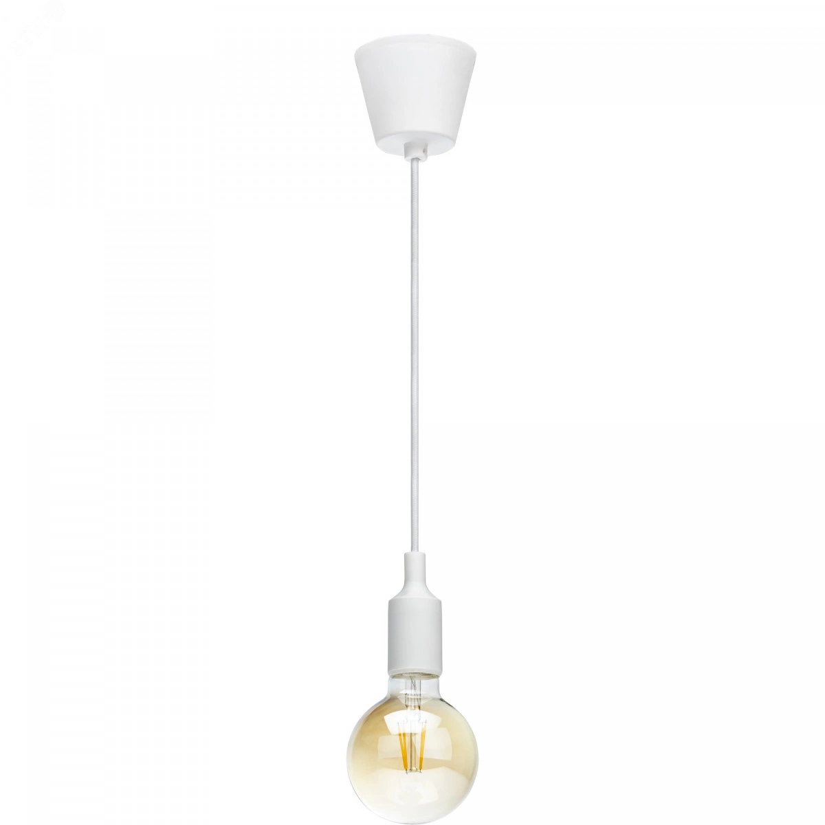 Патрон Е27 пластиковый с подвесом 1м, белый, 24642 8, REV
